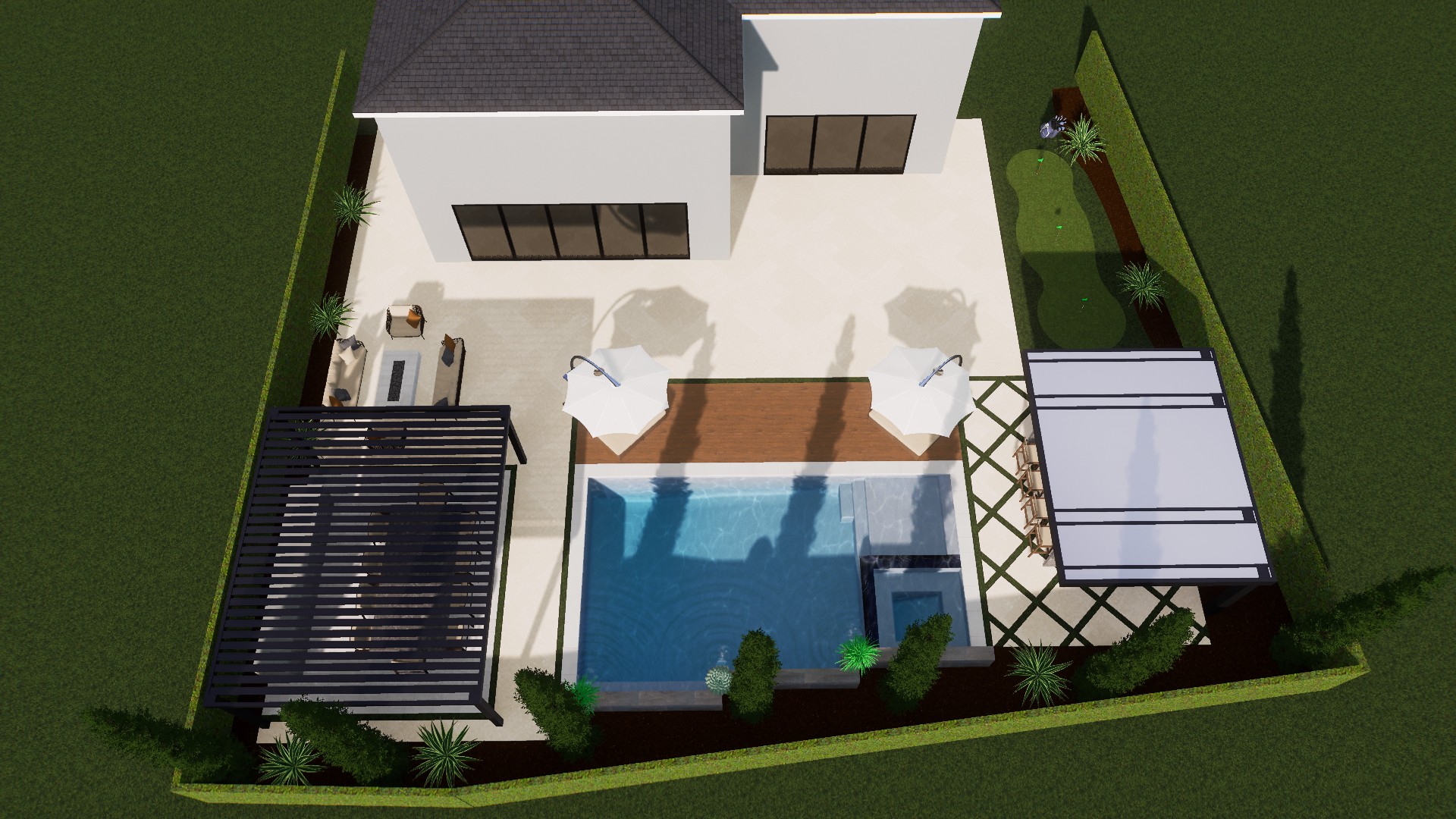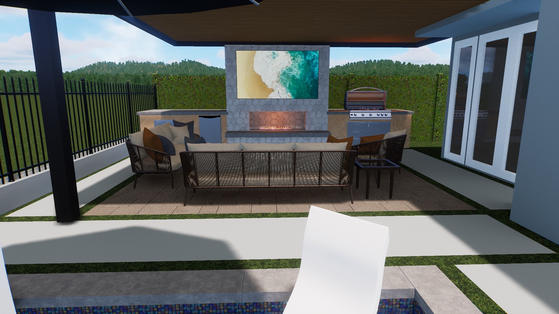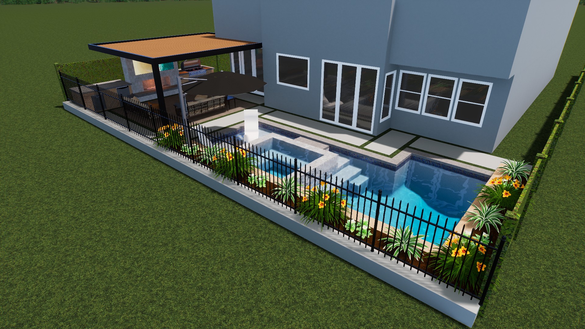 3D renderings eliminate guesswork. Instead of imagining from blueprints, you’ll see a realistic, immersive preview of your custom pool and outdoor environment.